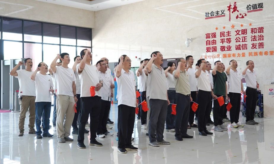 全體黨員列隊(duì)肅立,重溫入黨誓詞,鏗鏘誓言在場(chǎng)館間久久回蕩。