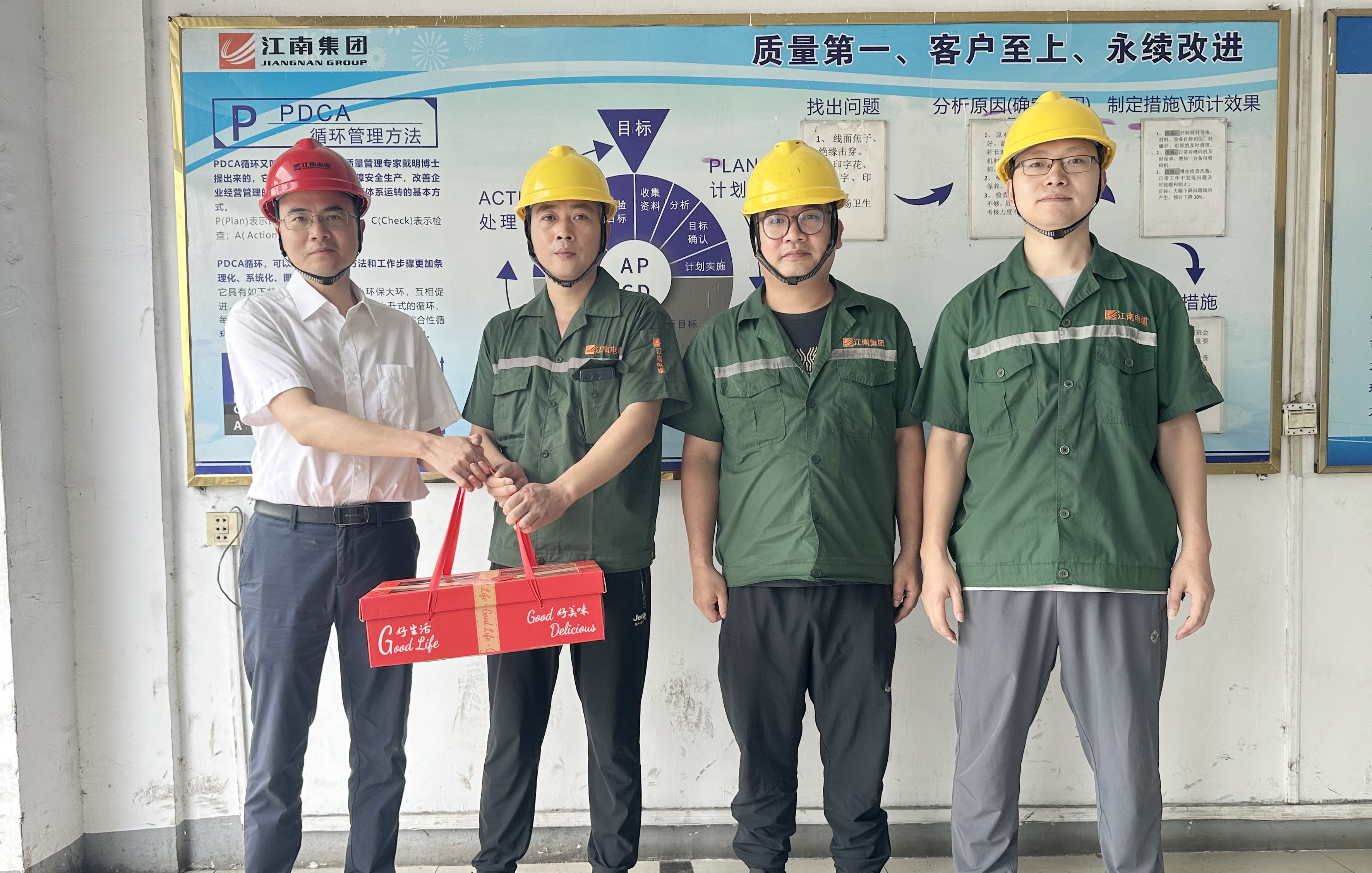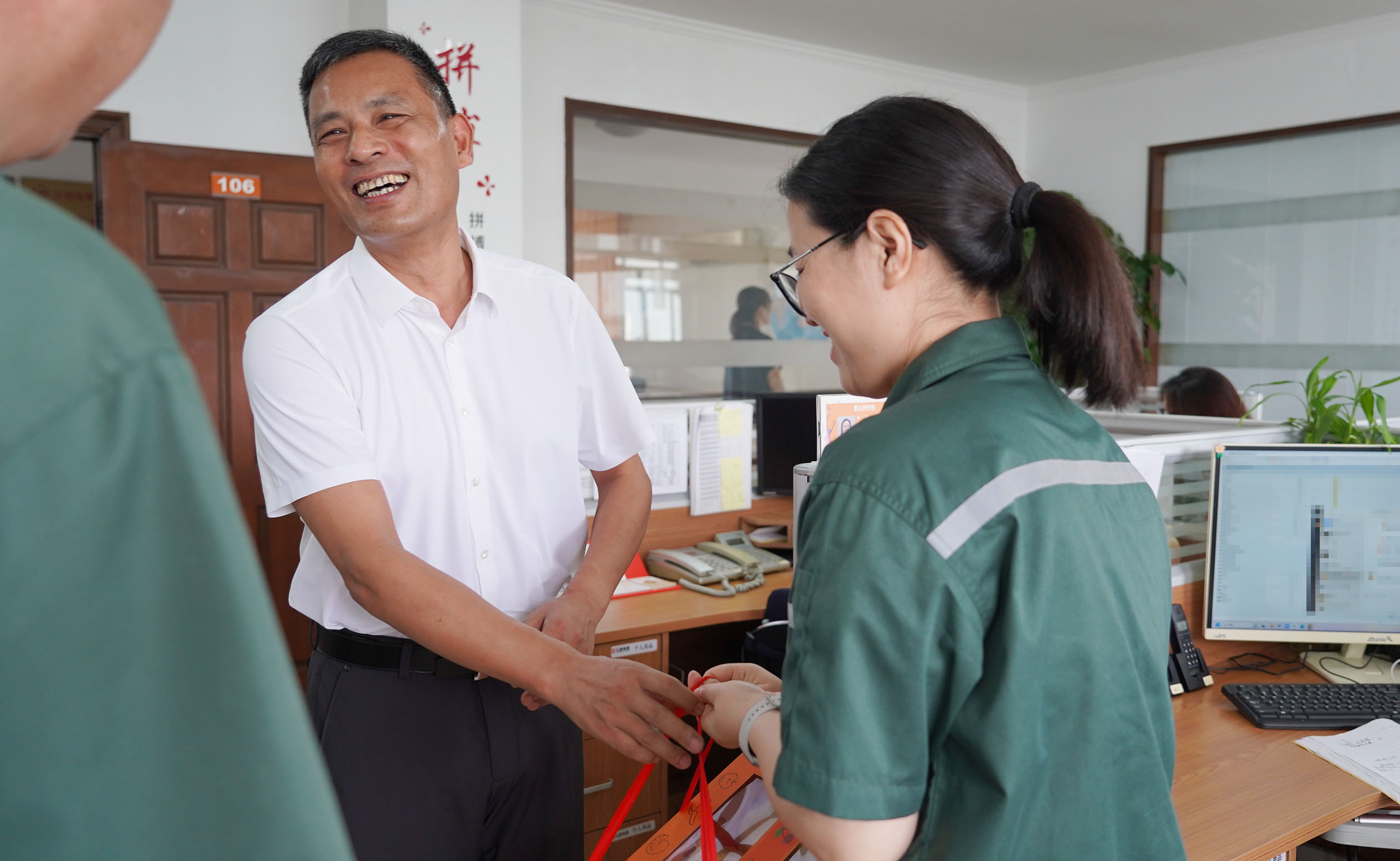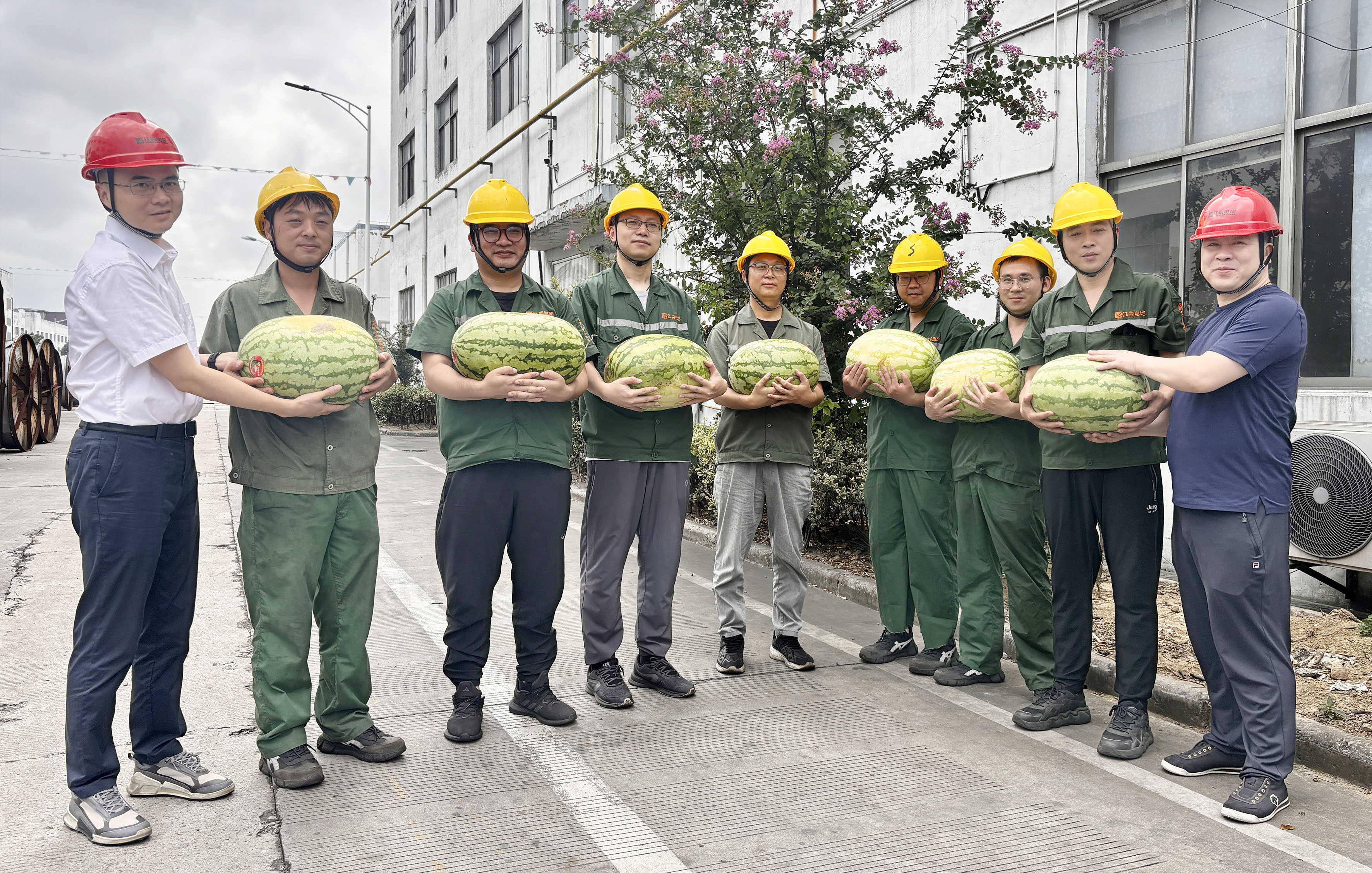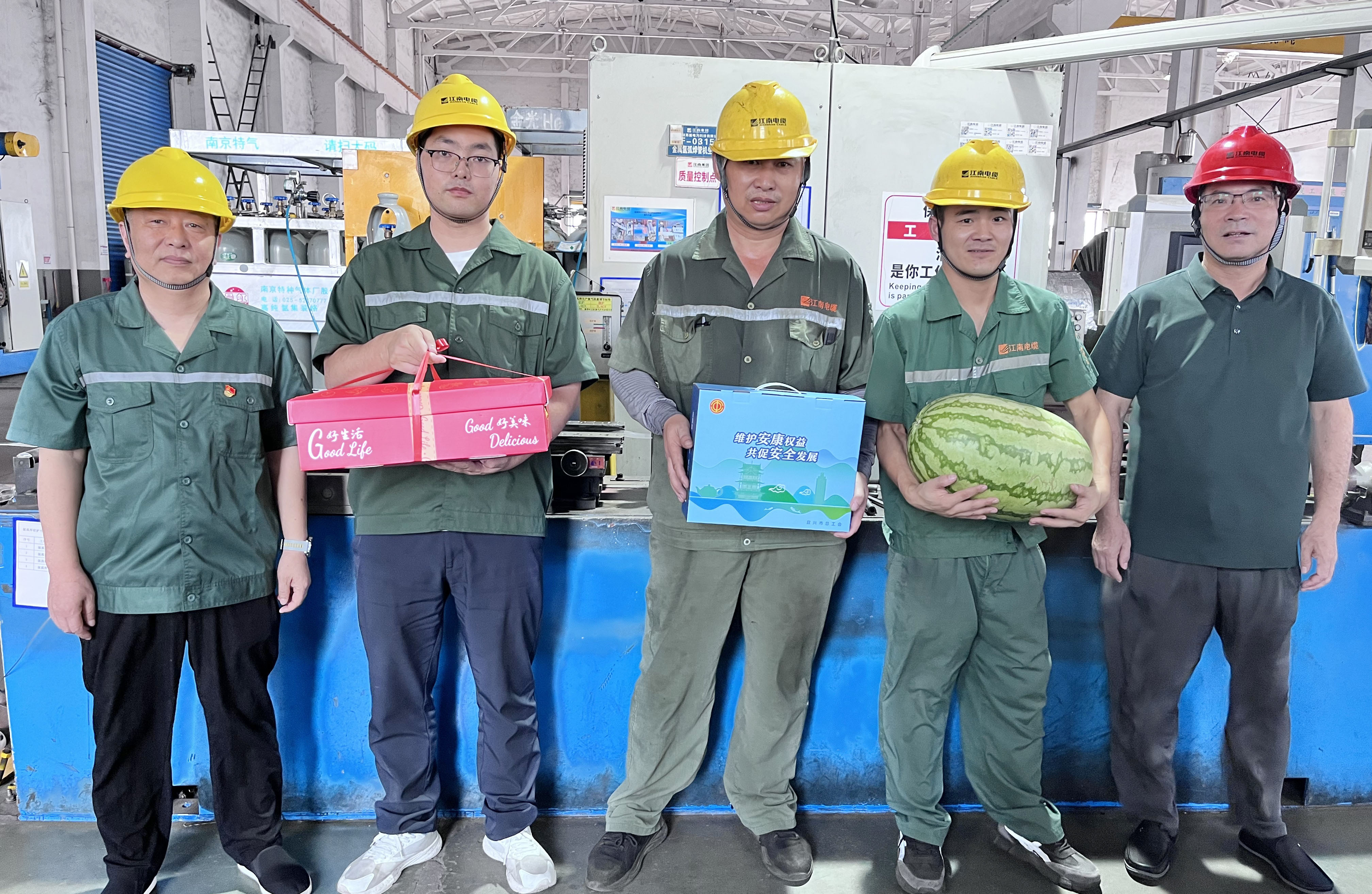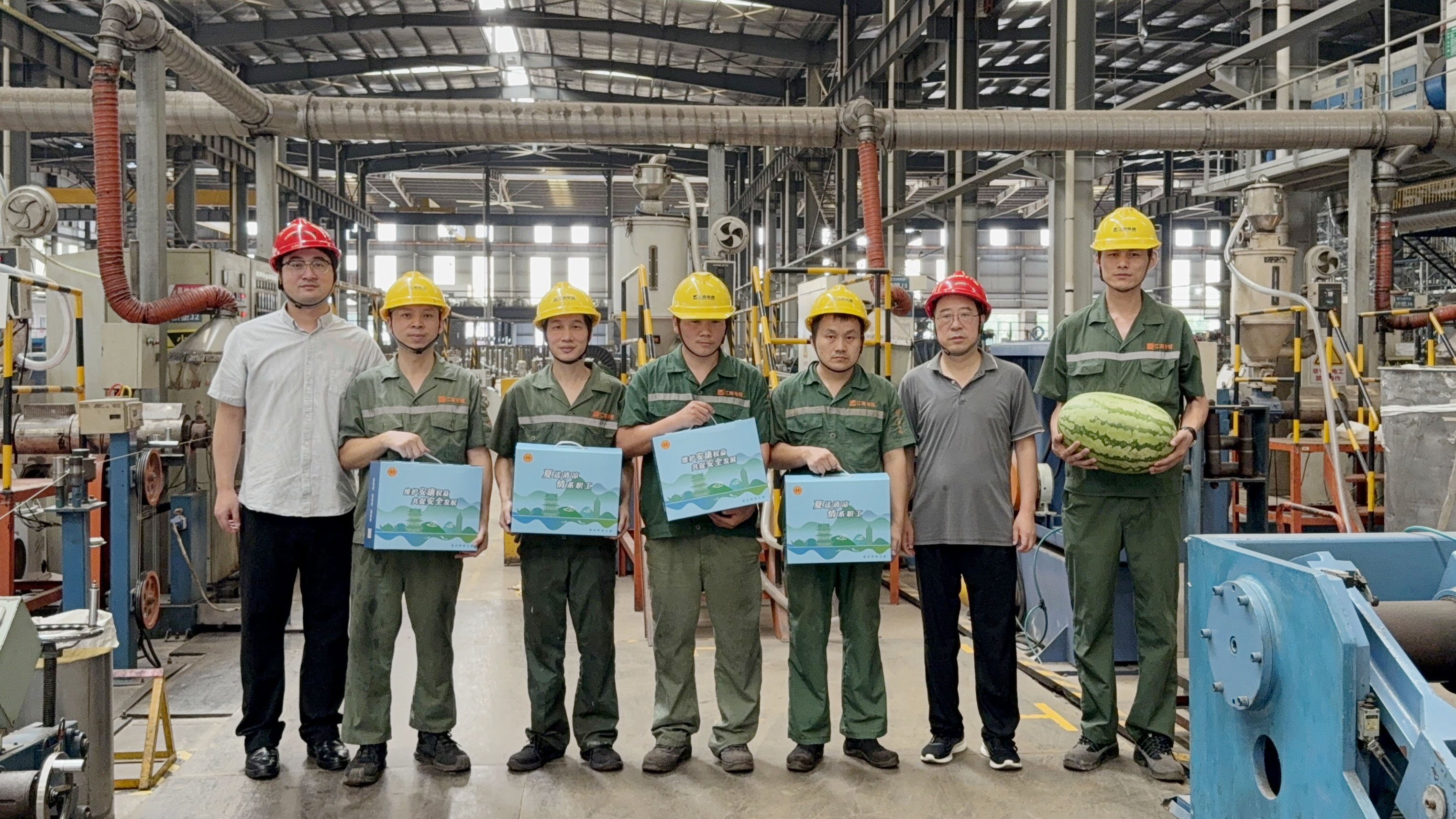 夏日炎炎,暑氣蒸騰。為切實做好高溫時節(jié)安全生產和員工關愛工作,近日,公司董事長儲輝、運營總經理蔣君西帶領領導班子成員深入車間一線與后勤部門,開展“情系員工 夏送清涼”慰問活動,為不畏酷暑、堅守崗位、辛勤奉獻的員工送上關懷與問候。