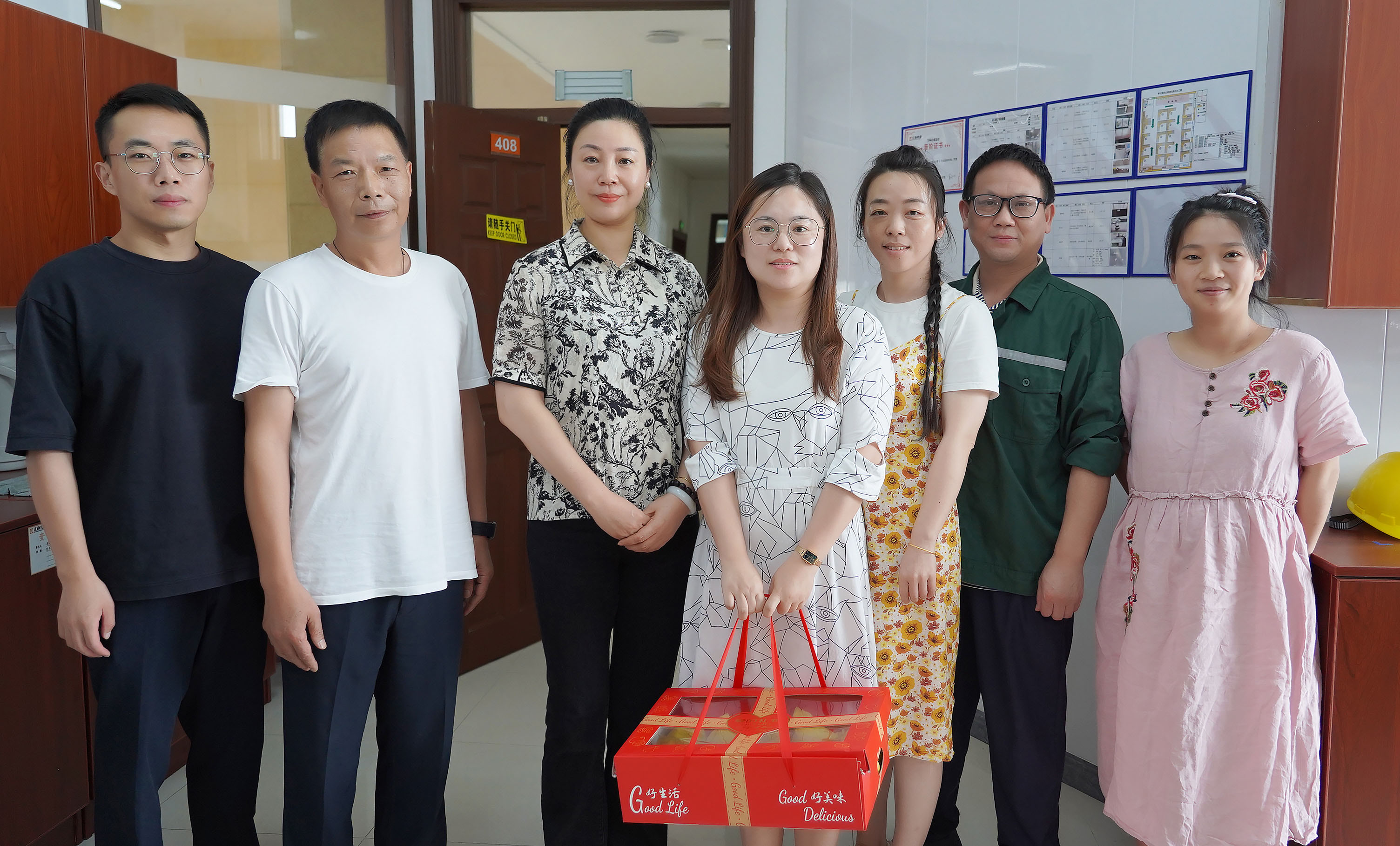 運營總經理蔣君西、副總經理芮一云、總經理助理胡亞紅赴辦公樓送清涼
